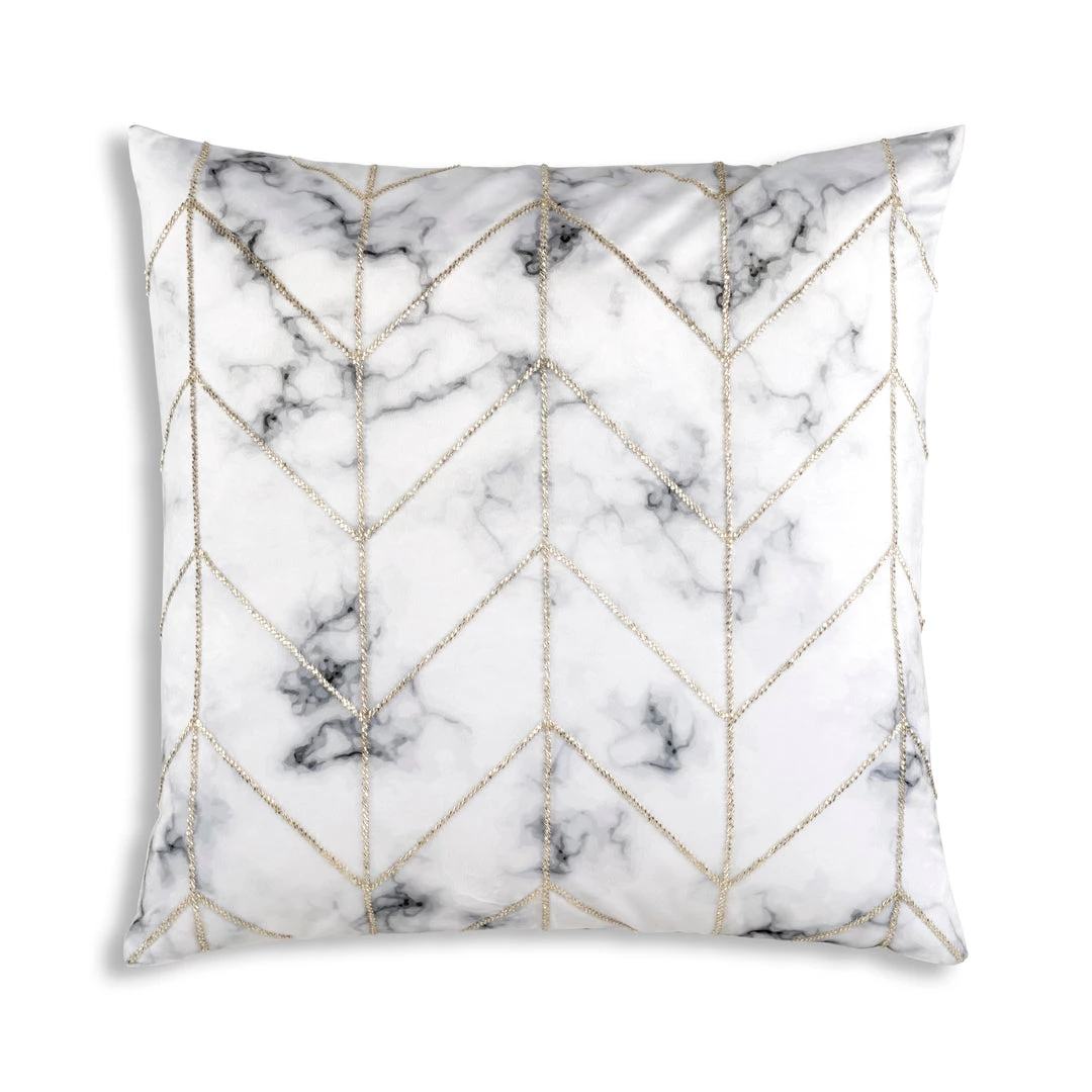 Digital Print Velvet Square Pillow with hand beaded Silver/Crystal beads