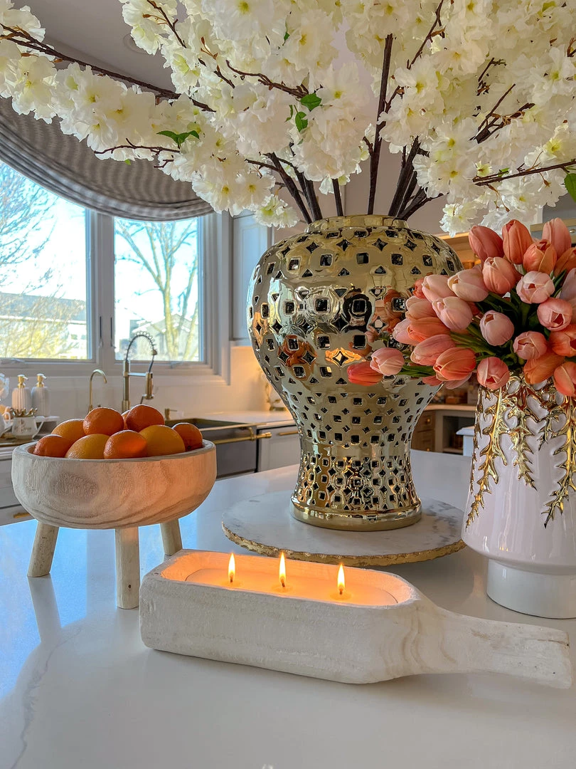 Inspire Me! Home Decor Rectangular Marble Tray With Cherry Blossom Details