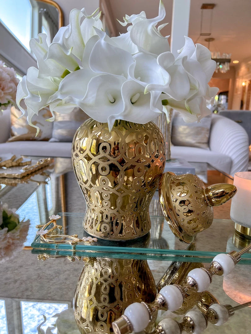 Inspire Me! Home Decor White Ceramic Jar With Elegant Gold Details (2 Sizes)