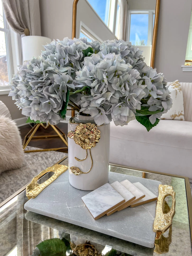 Description: This is a gorgeous two tone blue/grey Hydrangea stem that will add a pop of color to any floral arrangement!