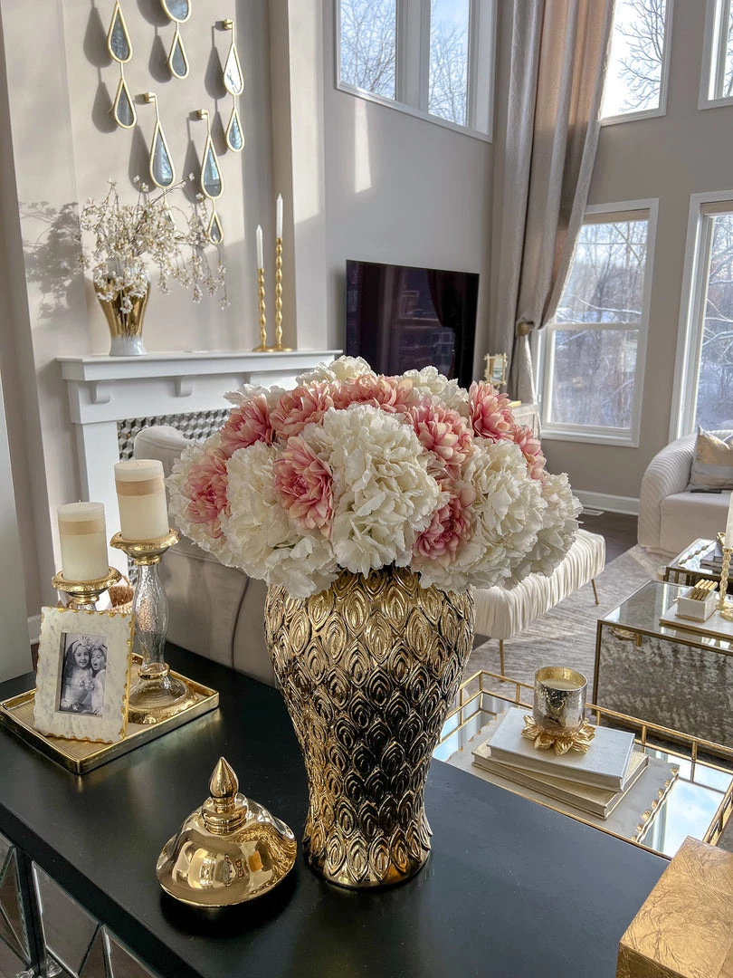 Inspire Me! Home Decor White Ceramic Vase With Stunning Gold Floral Detailed Center