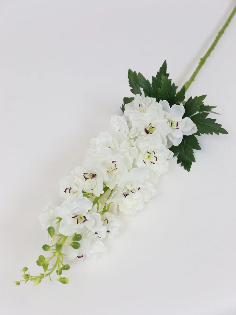 Description: This white delphinium stem is a perfect floral for an elegant room!