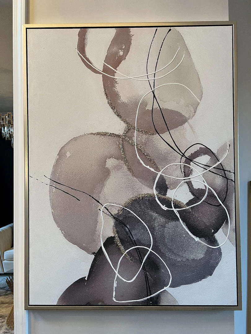 Description: This beautiful abstract painting has multiple layers of charcoal, taupe, and stone gray. It will become a great focal point and will bring inspiration and movement to any room.