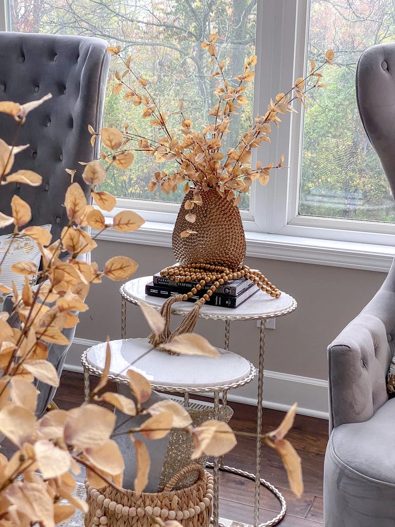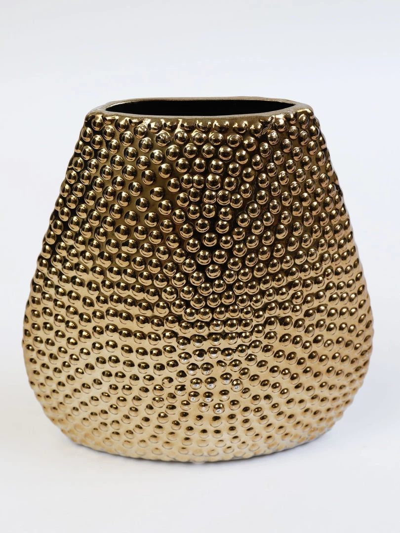 Description: This gold vase is a must-have piece! The simple and elegant design is complimented with a simple dotted texture. Display your favorite faux florals with style!