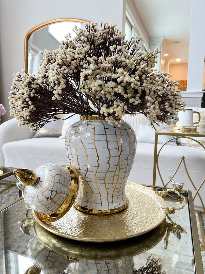 Inspire Me! Home Decor White Ceramic Jar With Elegant Gold Details (2 Sizes)
