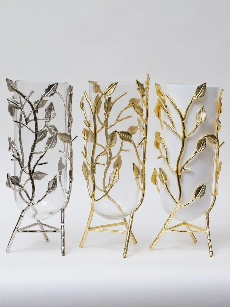 Description: This stunning vase features a clear glass vase and an intricate metal base! This vase will hold your favorite faux florals in style. Comes in Gold and Silver.