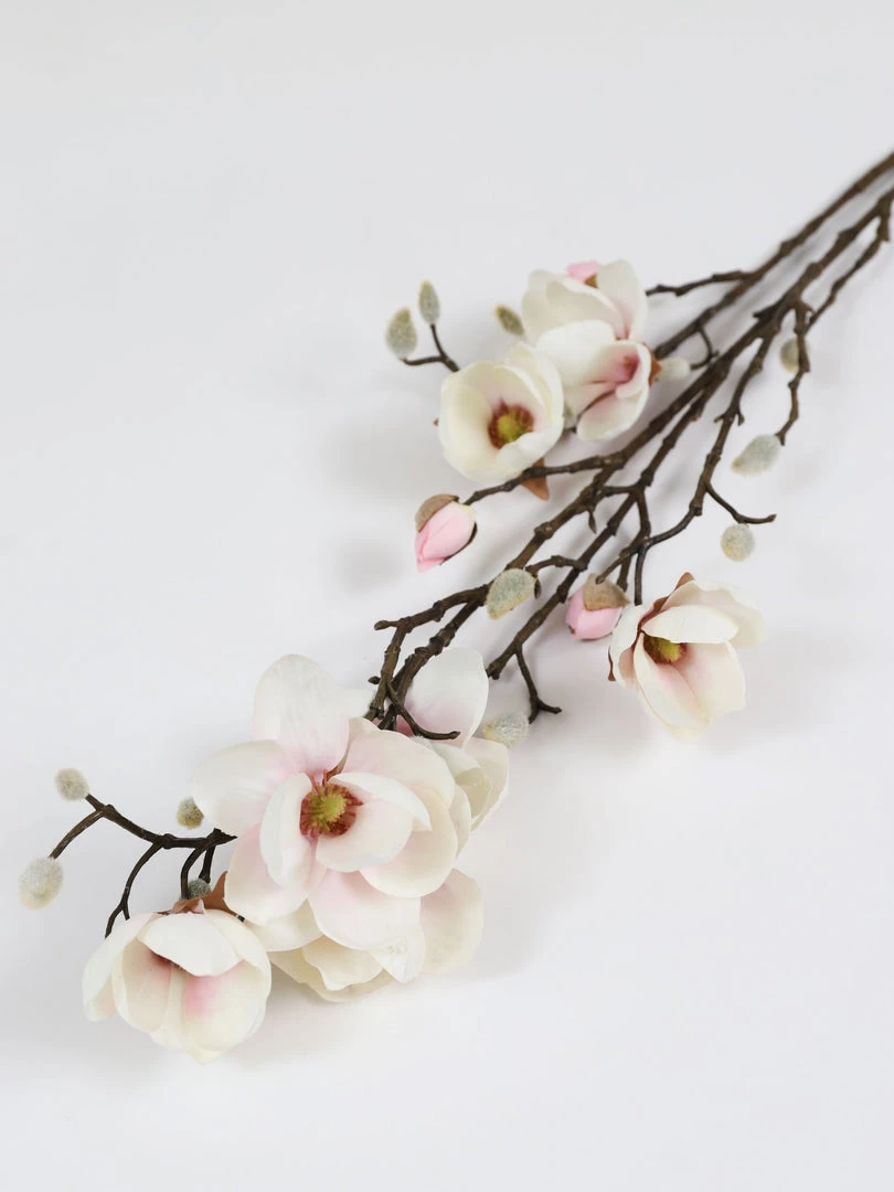 Description: These faux cream magnolia stems are great to style during any season! The stunning colors at a pop to any room.