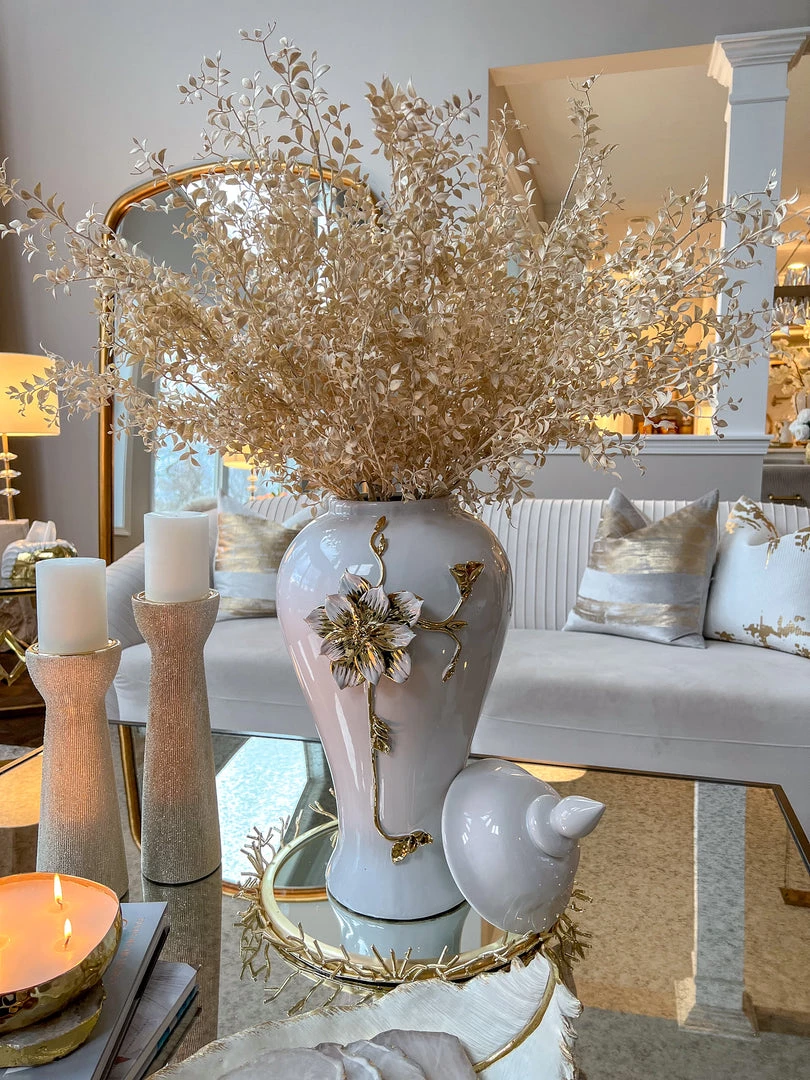 Inspire Me! Home Decor White Ceramic Jar With Elegant Gold Details (2 Sizes)