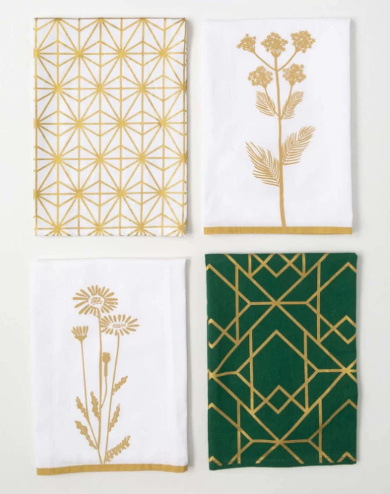 These tea towels are absolutely stunning! The gold detailing adds such a luxurious touch to my kitchen. Highly recommend!