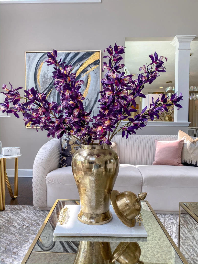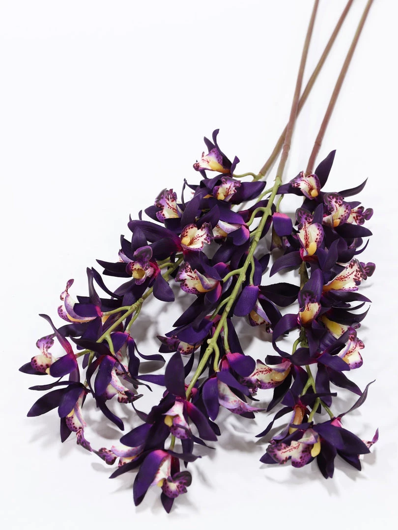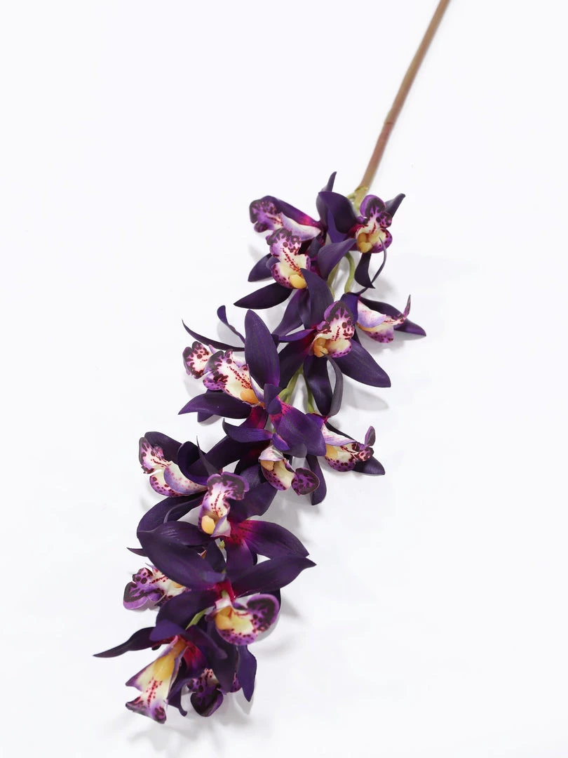 Description: We love the deep purple color of this orchid stem! Perfect to add a bold pop of color to any room, and just in time for summer florals!