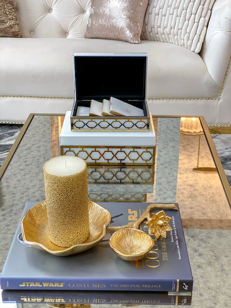 Gold entertaining tray great for the holidays and dinner parties! Use with candles as an elegant holderÂ