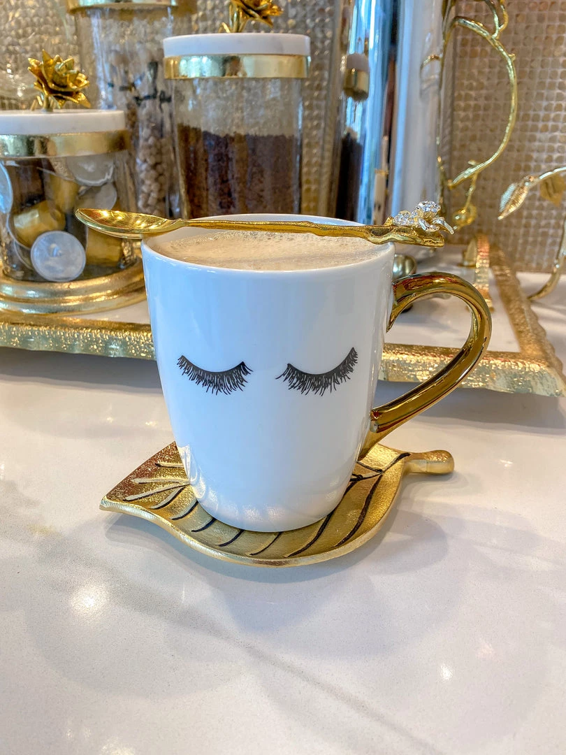 Description: Bat your eyes and flash a smile for this glamorous coffee mug! The perfect mug for the morning fashionista to enjoy that perfect morning cup!