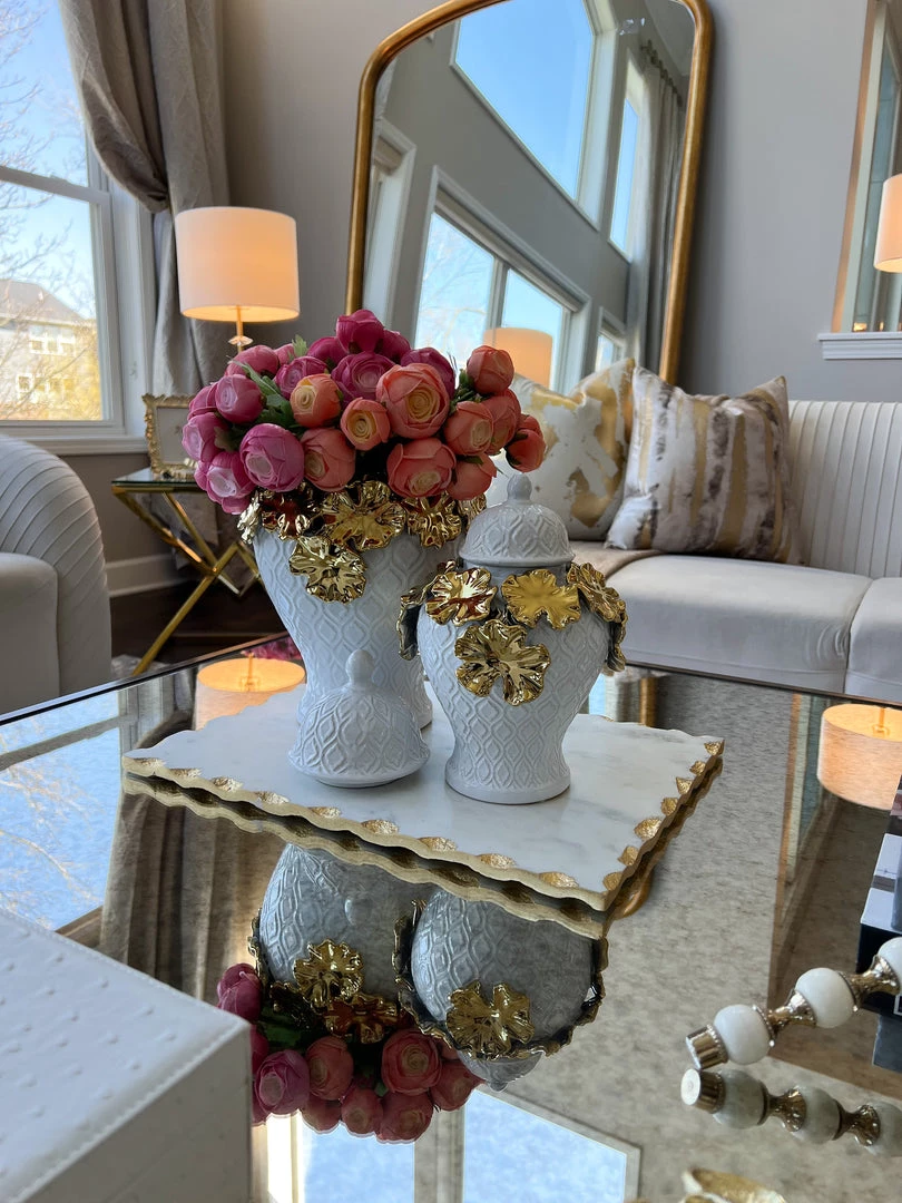 Inspire Me! Home Decor White Ceramic Vase With Stunning Gold Floral Detailed Center