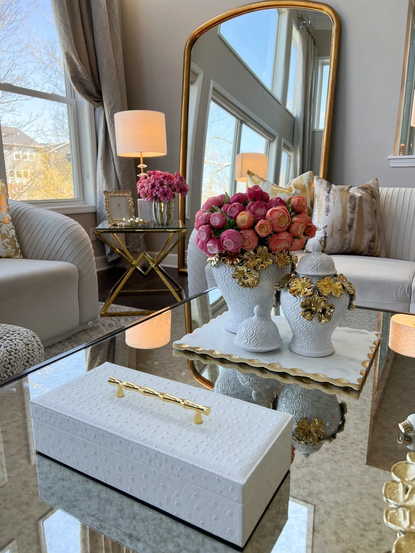 Inspire Me! Home Decor Large Rectangular Marble Tray With Cherry Blossom Details