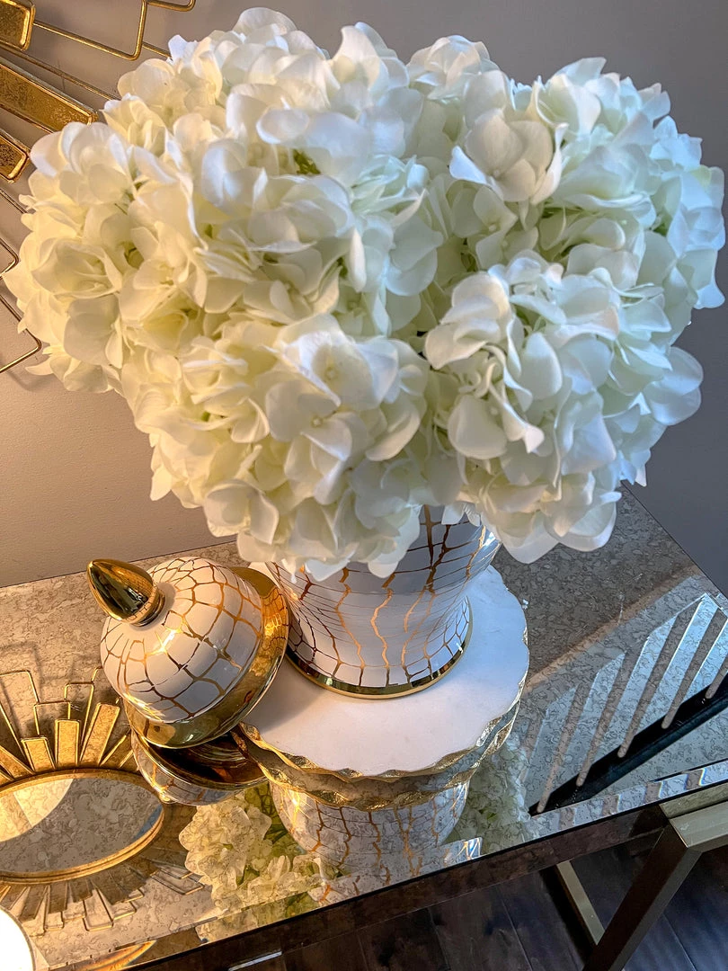 Description: This hydrangea features a soft creamy white color for a stunning look during any season. Style in a bowl or vase for an elegant look in your space.