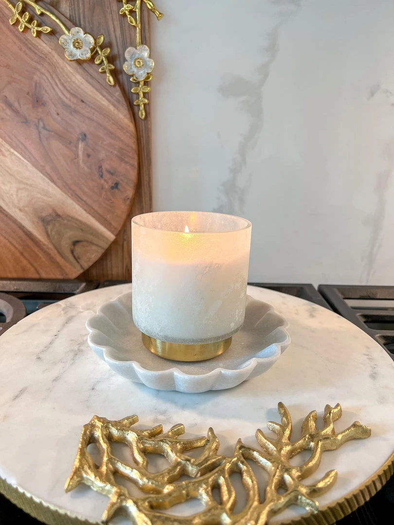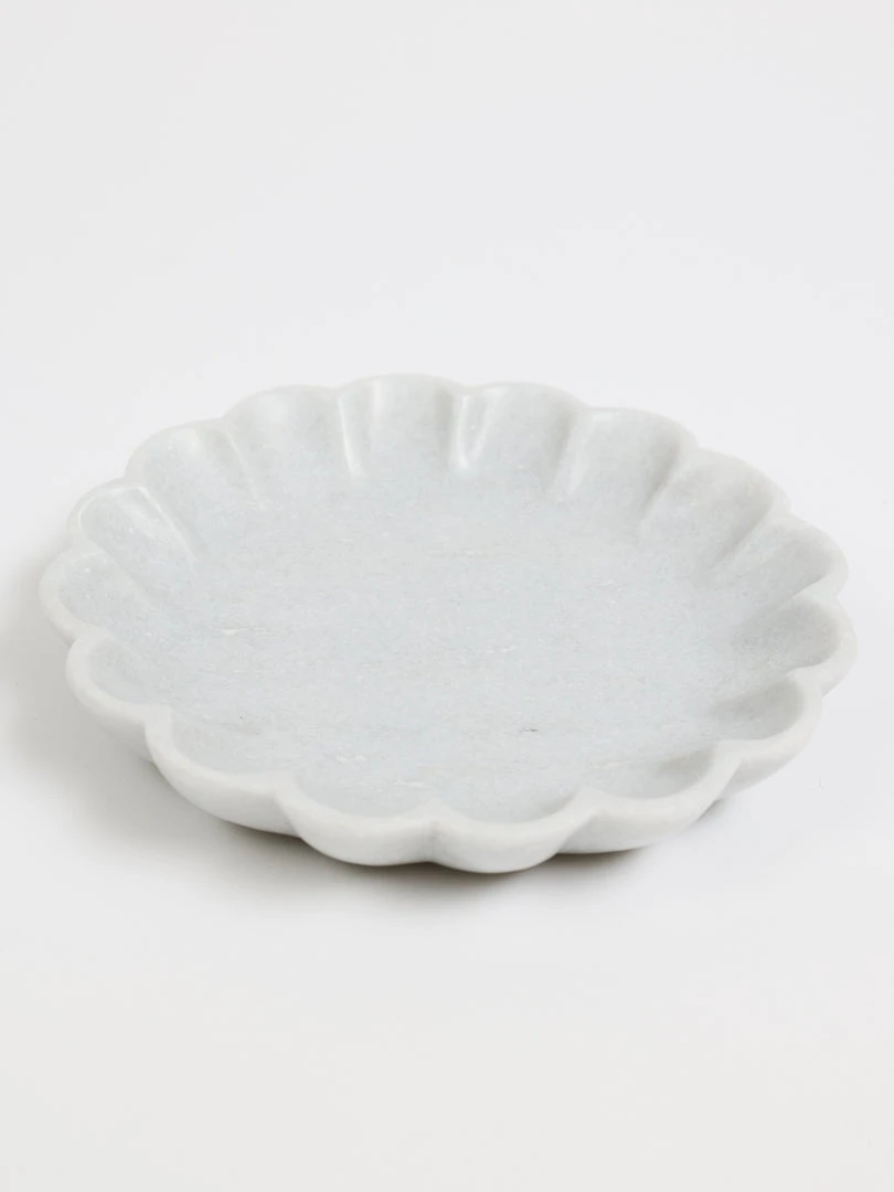 Description: This marble flower shaped dish can be used as a spoon rest or to place your jewelry and rings on your nightstand. This would make a beautiful candle trivet as well.