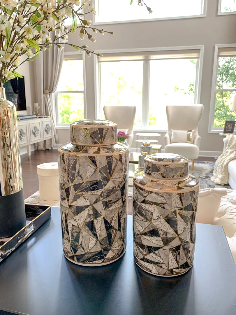 Inspire Me! Home Decor White Ceramic Jar With Elegant Gold Details (2 Sizes)