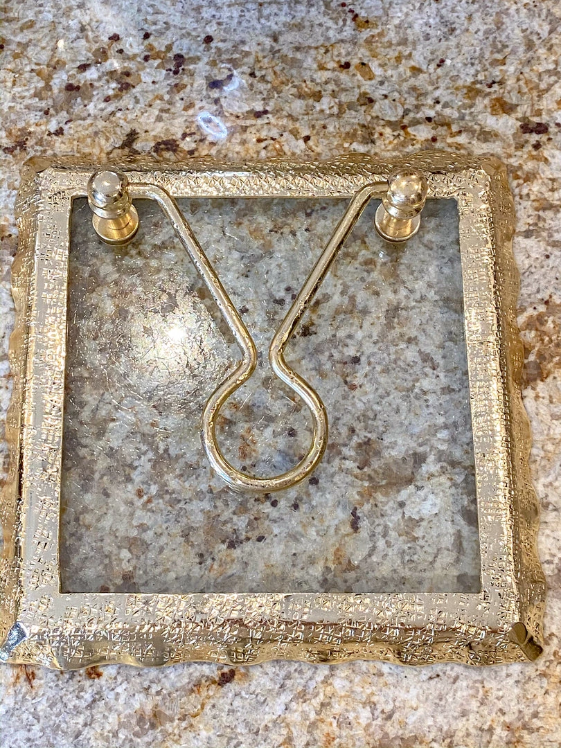 This Glass and Metal napkin holder brings elegance and grace to your kitchen. It is the perfect piece to display napkins to spruce up your kitchen island, or table.