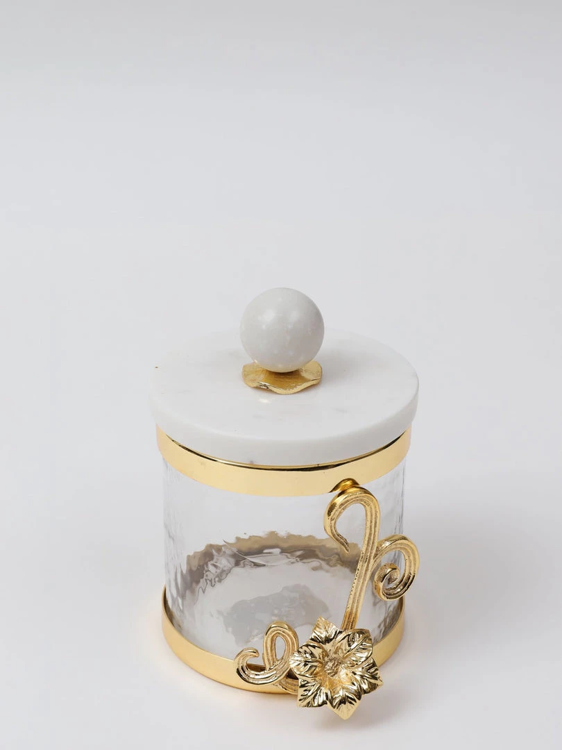 Absolutely stunning! The gold details and marble lid add such a luxurious touch to my kitchen. Perfect for storing coffee or tea.