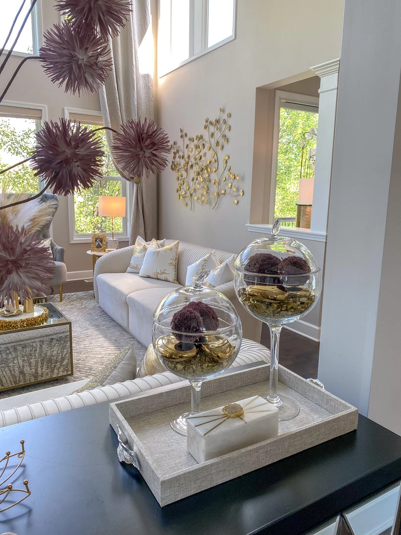 These apple stem jars can be styled as a set or on their own. They can be filled with candy, snacks, or even left empty! Farah has them styled with beautiful crystal stones and crushed gold glass!