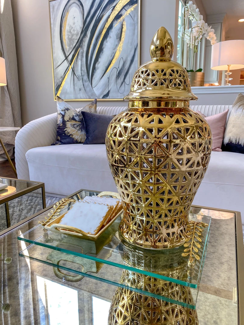Inspire Me! Home Decor White Ceramic Jar With Elegant Gold Details (2 Sizes)