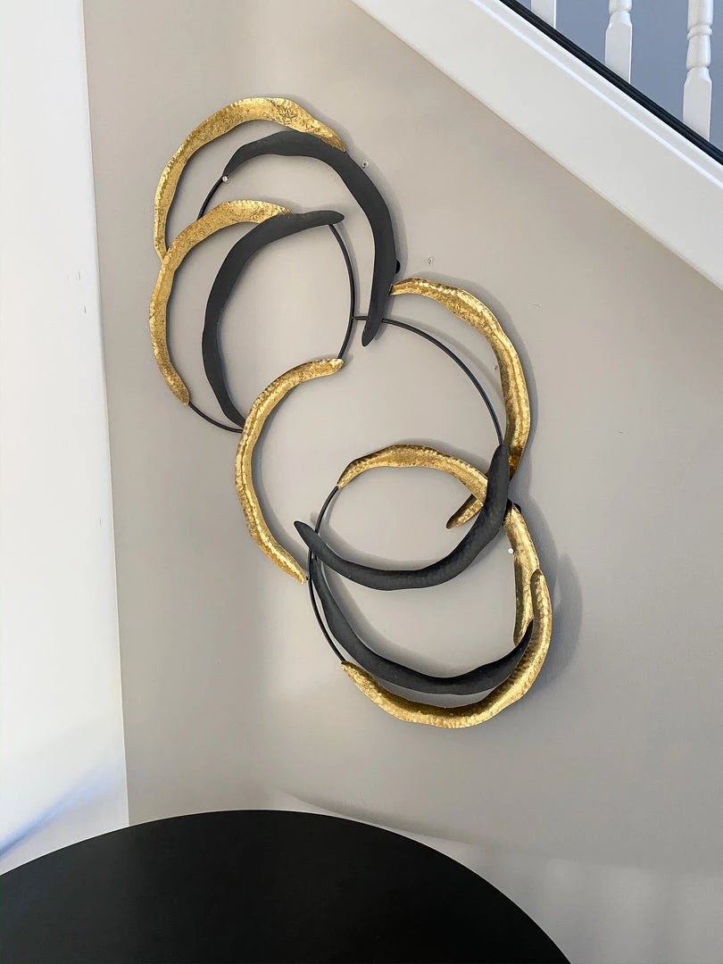 This metal wall art with black and gold loops is a perfect statement piece for any wall in any room!