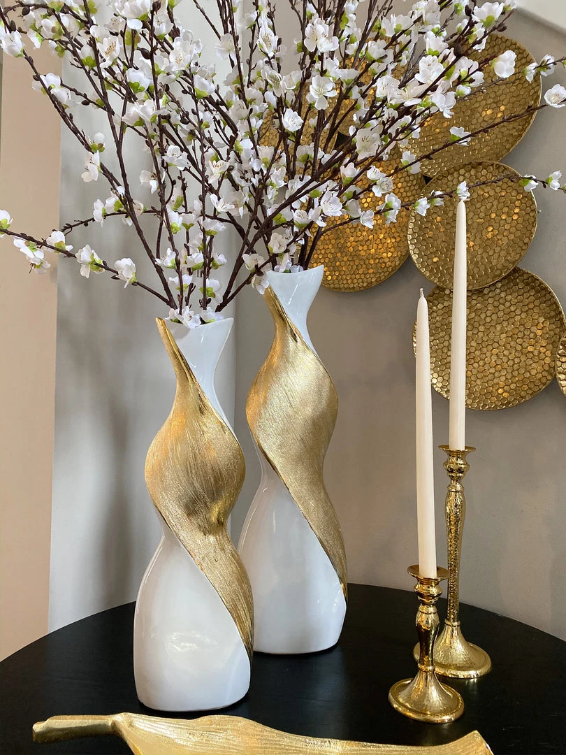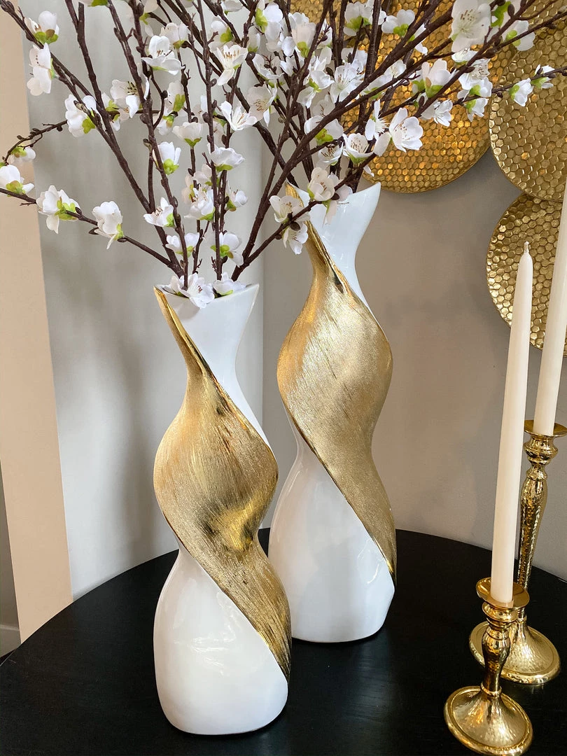 Description: Add a unique touch of glam into your home with these twisted vases! Available in silver and gold and two different sizes, this vases will blend seamlessly into your existing decor with its unique and timeless design.