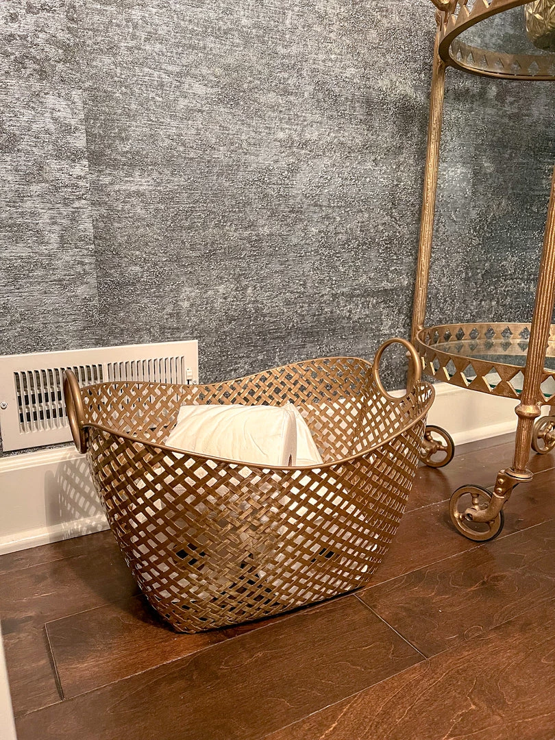 Description: This large storage basket with handles is ideal for laundry or a beautiful place to store your throws, pillows, or magazines.
