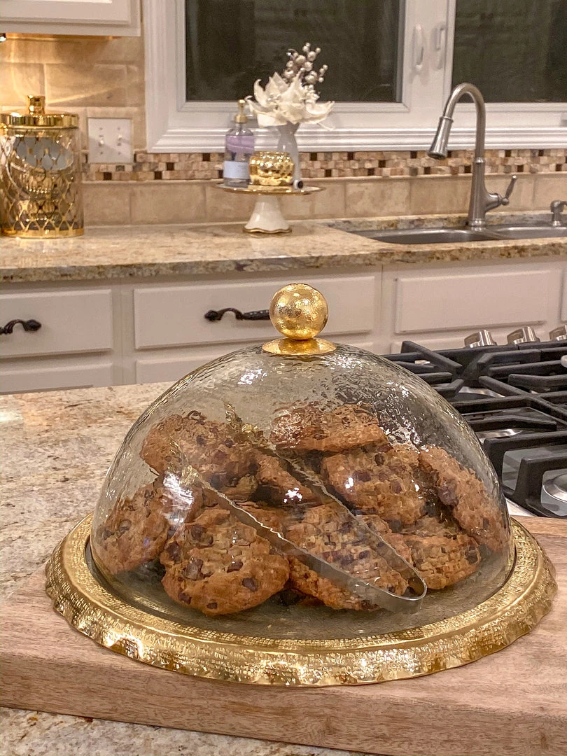 I’m in love with this cake dome! It’s the perfect centerpiece for my dessert table. The gold border makes it look so luxurious.