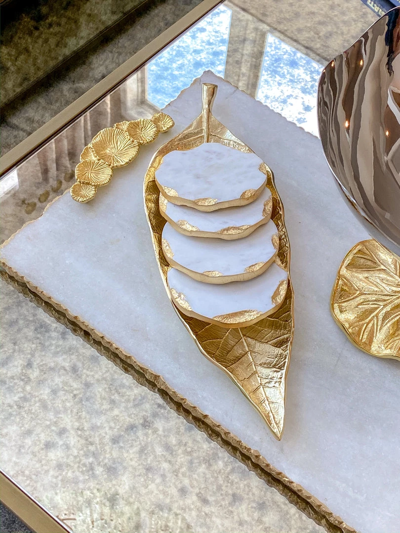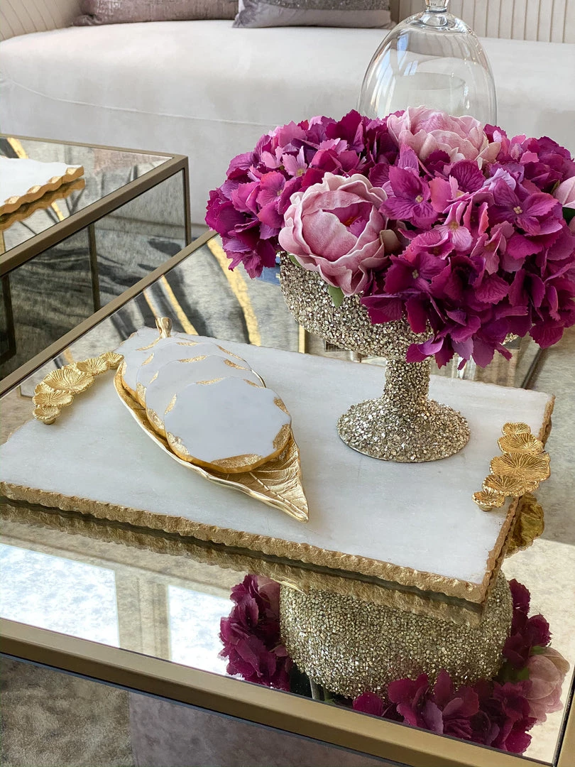 Inspire Me! Home Decor Large Rectangular Marble Tray With Cherry Blossom Details