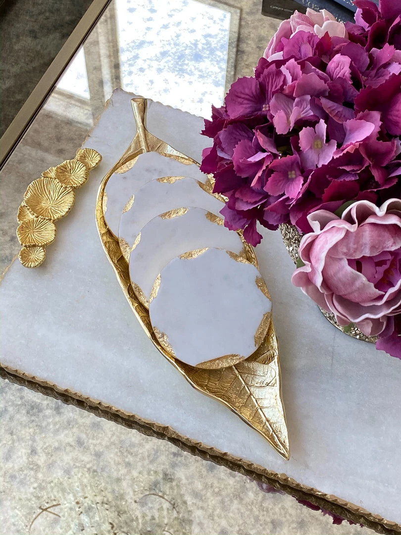 Inspire Me! Home Decor Rectangular Marble Tray With Cherry Blossom Details