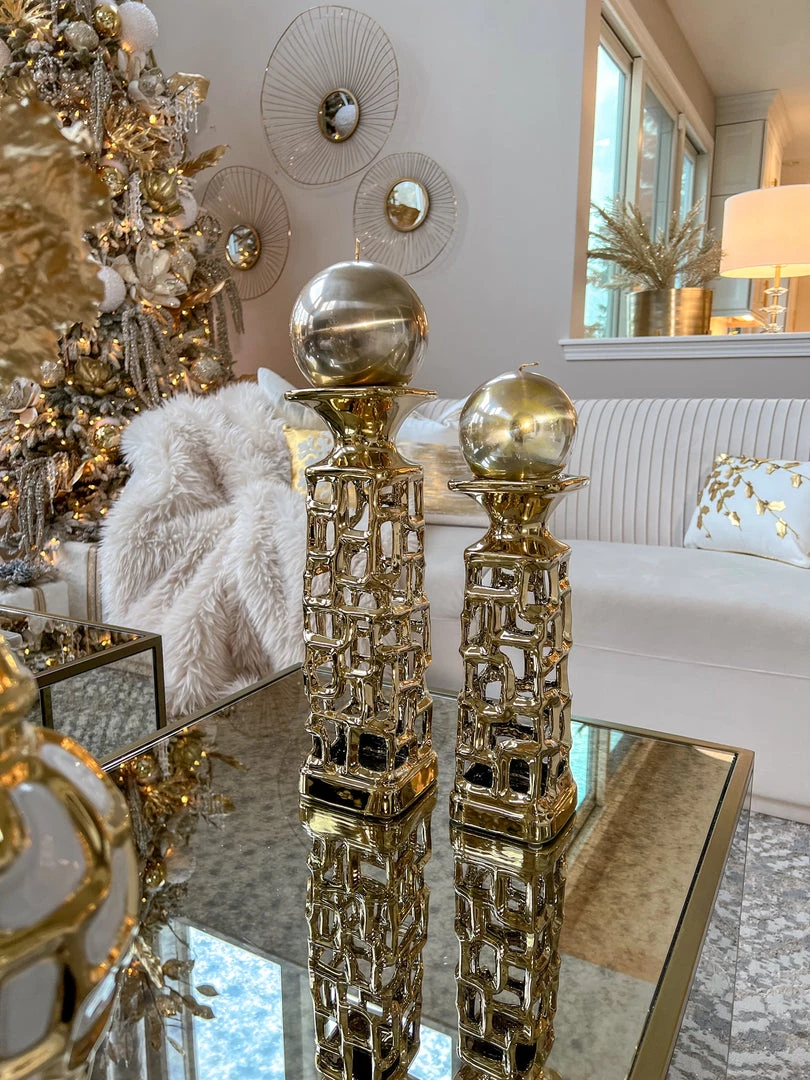 Description: These gold candle holders are the statement piece you have been waiting for. The two sizes bring an elevated look to your space. The square deign for the base gives these an impressive look.