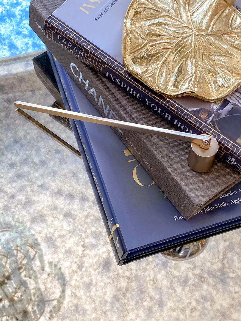 Description: A simple gold piece that is functional and stylish- Perfect to keep next to your favorite candle to add that unique touch of glam.