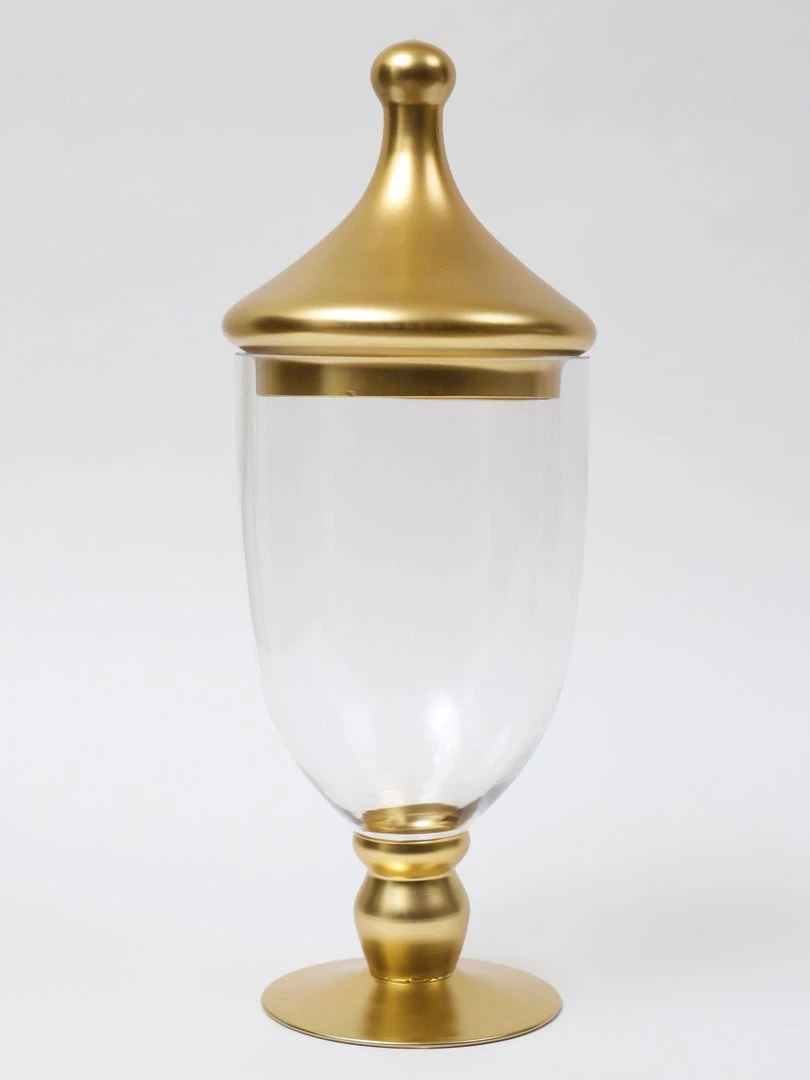 Description: These glass apothecary jars have a fun and interesting shape and are perfect to hold things or as a vase!