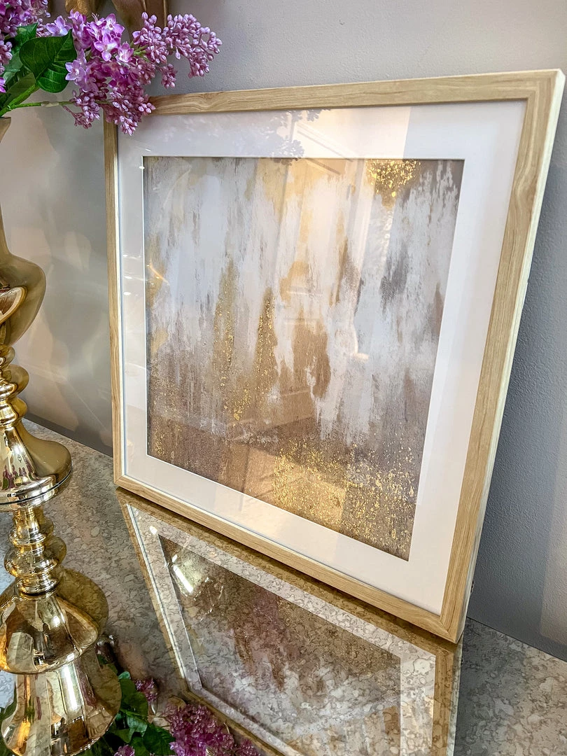 Description: The two-piece framed wall art has gorgeous tones of gold, gray, and beige which blends with almost any decor style.
