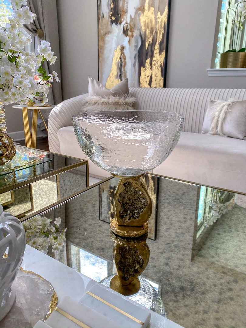 Description: Inspired by the natural beauty of geodes, this stunning pedestal bowl will make a great addition ot your home! Style it with your favorite fillers or on its own!