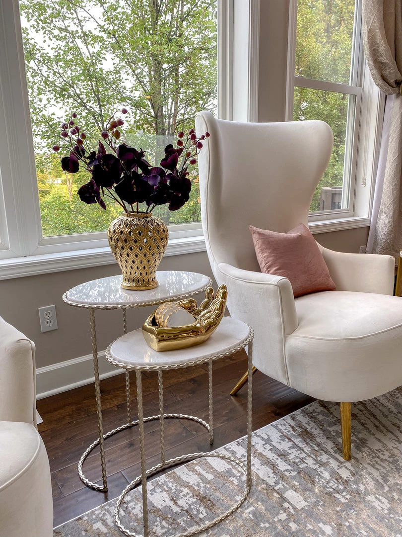 Inspire Me! Home Decor Set Of 2 Hammered Glass Pumps With Gold Tops And White Jeweled Flower Details