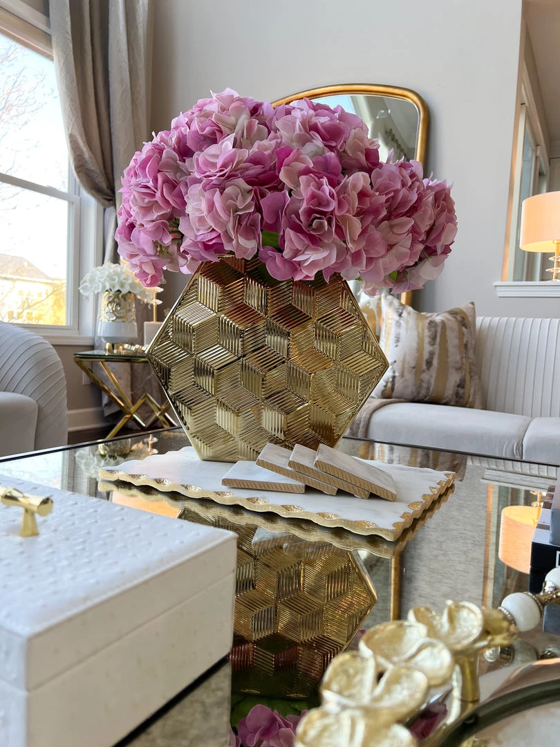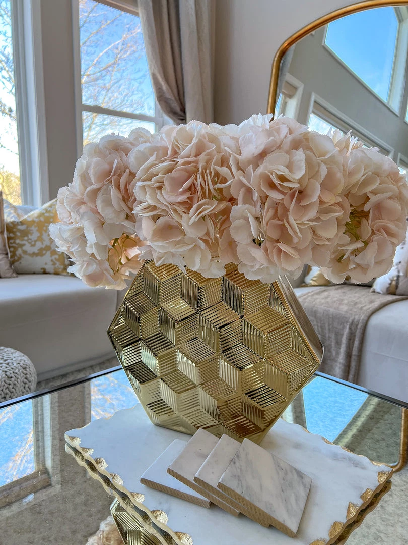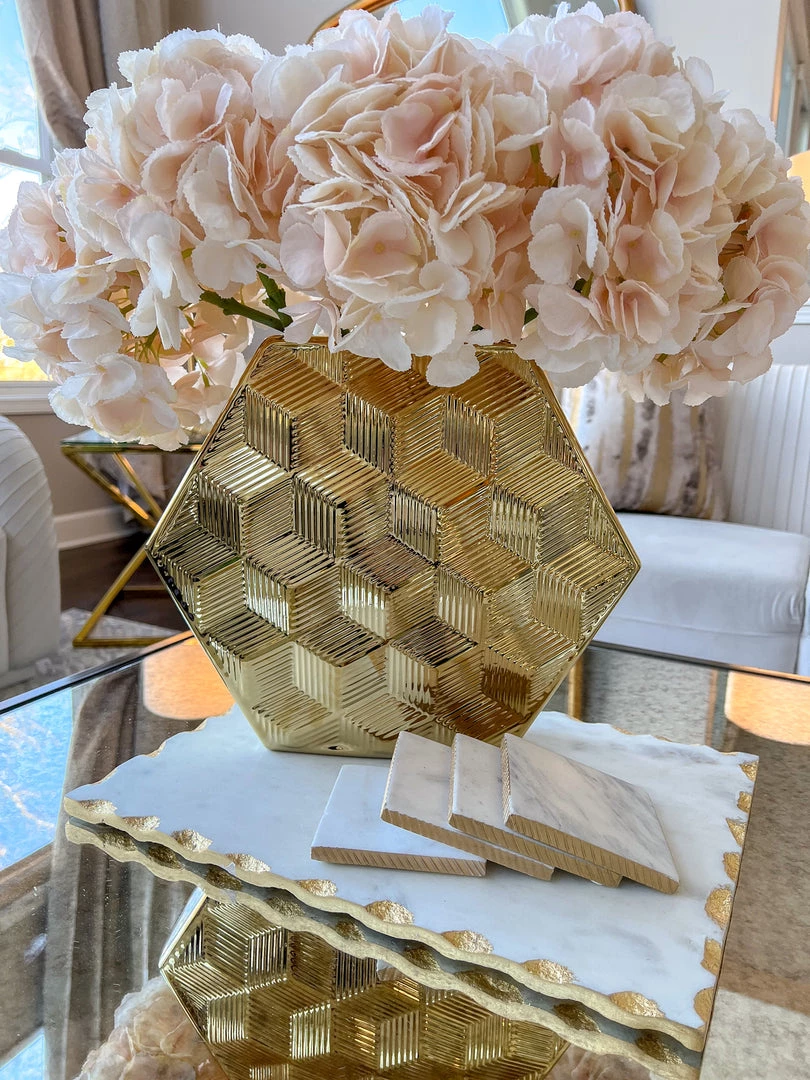Description: This beautiful shiny hexagon textured vase will make the perfect centerpiece in your home decor!