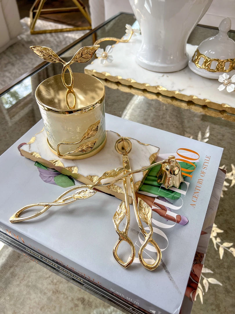 Description: This is a stunning gold ensemble. Style with your favorite IMHD trivet or marble tray and make a gorgeous vignette!