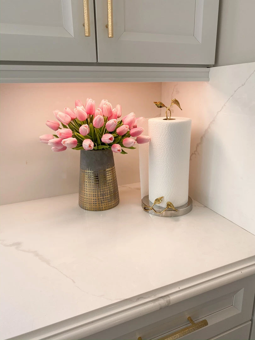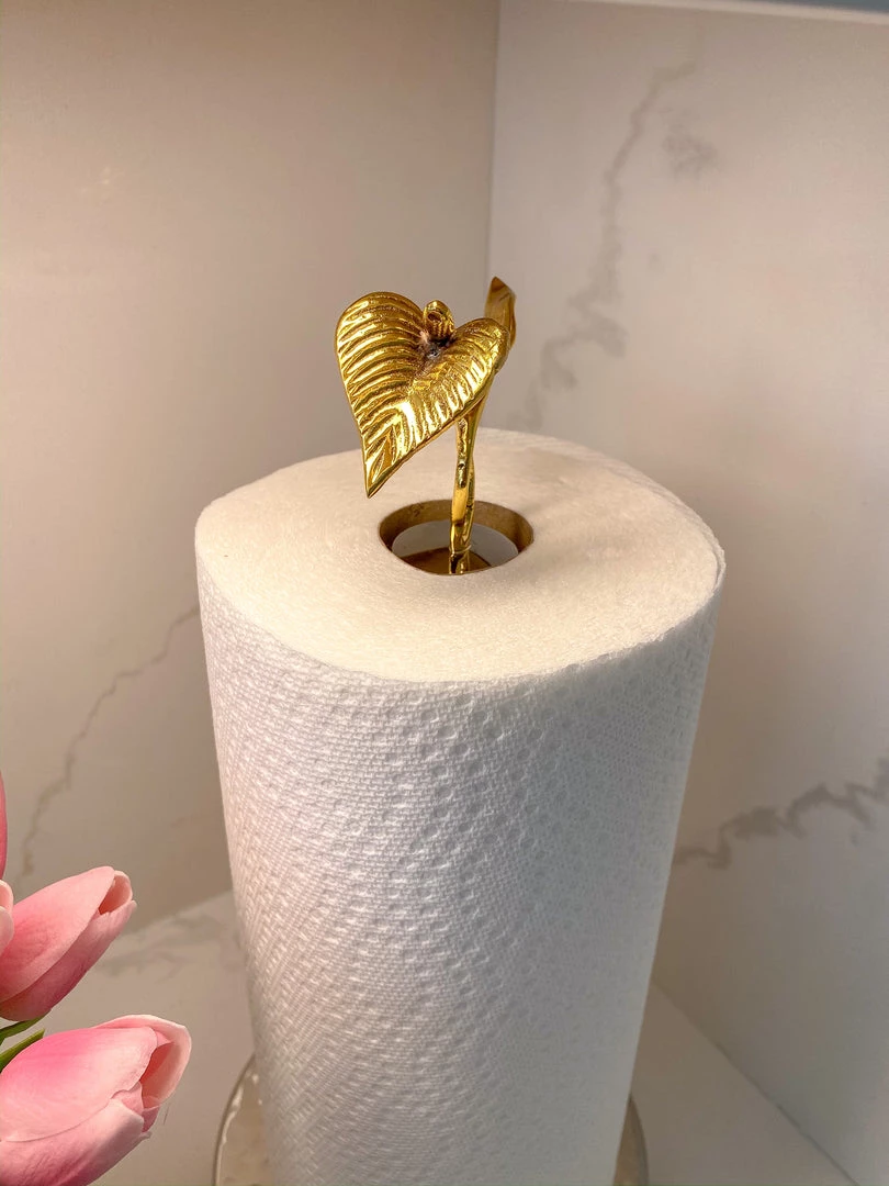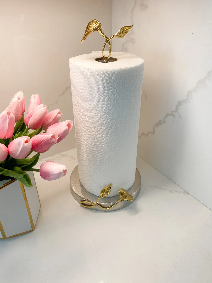 This stunning metal paper towel holder will take your kitchen counter to the next level. With stunning gold detailing, this piece is a show stopper.