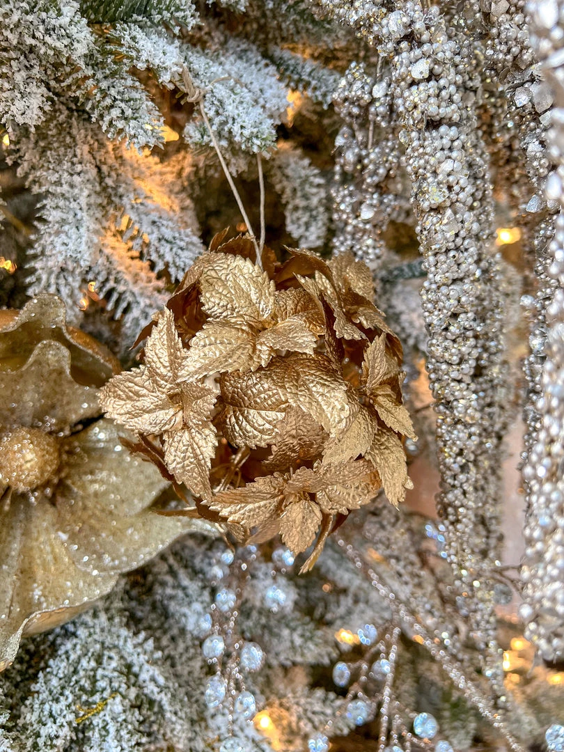 Description: This unique leaf orb ornaments are beautiful! This is must-have on your Christmas tree this year! The detailing on this ornament is like no other ornament we carry! Available in gold and silver.