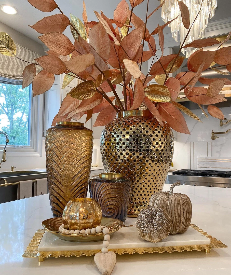 Inspire Me! Home Decor Gold Branch Centerpiece With 2 Glass Crackled Bowls