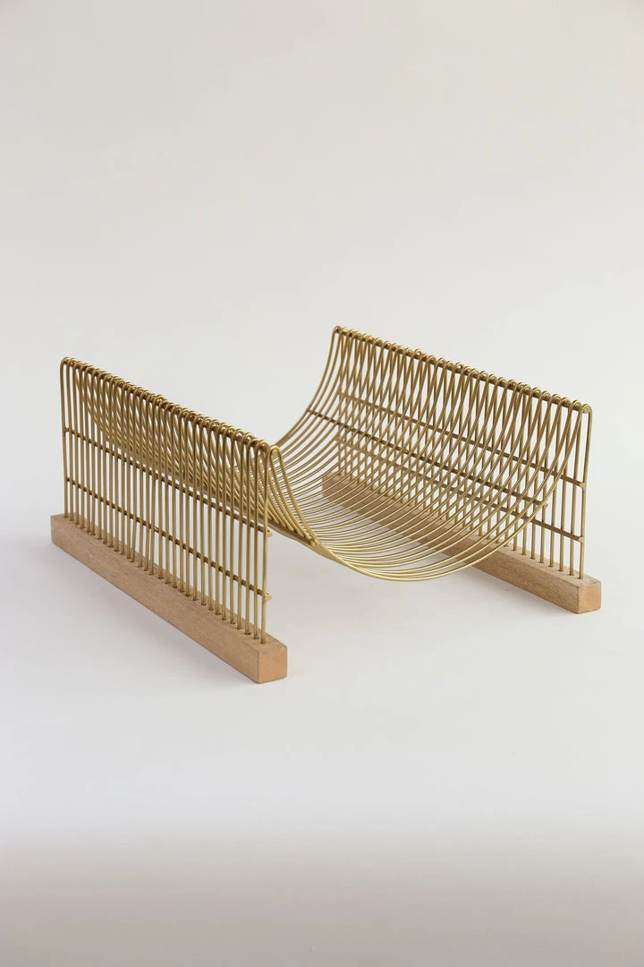 Description: Making washing this dishes an elegant affair! This beautiful dish drying rack features gold metal dividers and wood bases for a sophisticated look that will elevate your clean dishes!