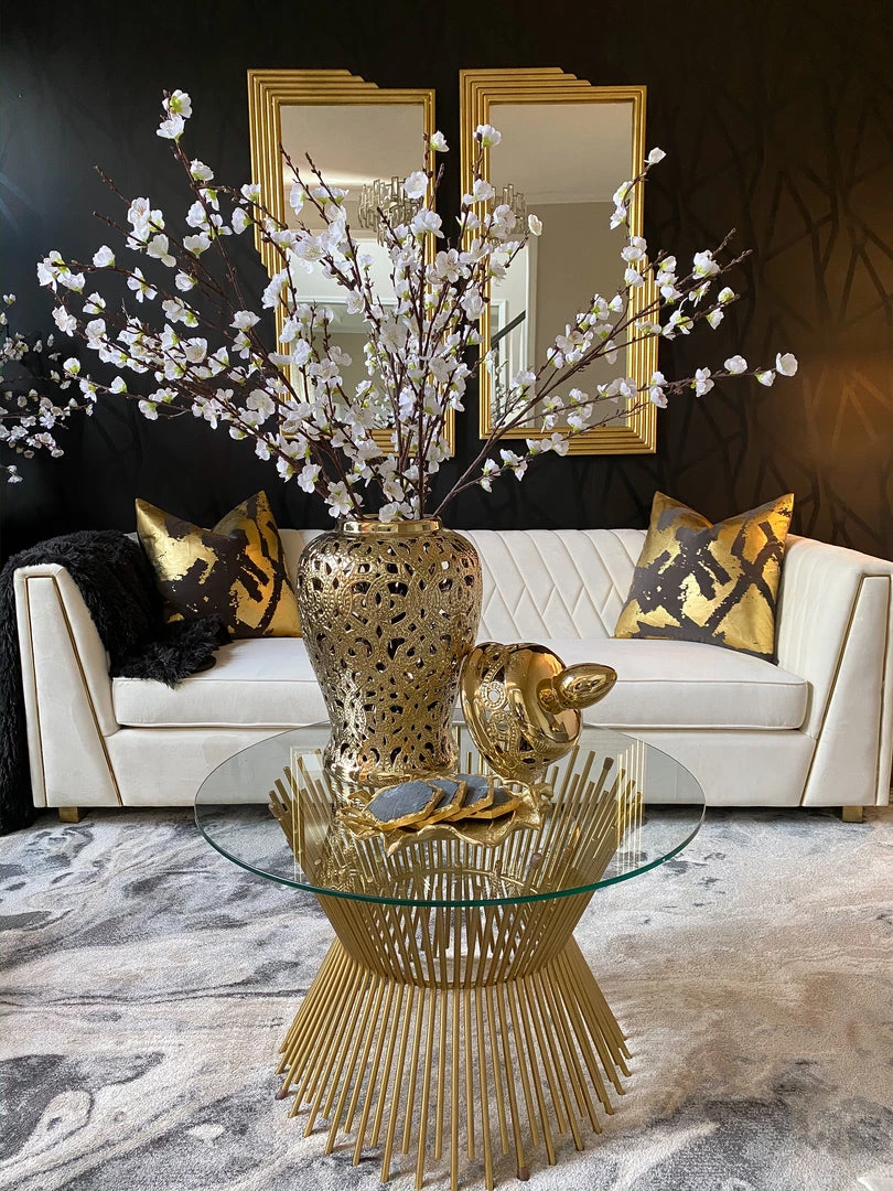 Inspire Me! Home Decor White Ceramic Candle Holder With Gold Elegant Details (2 Sizes)