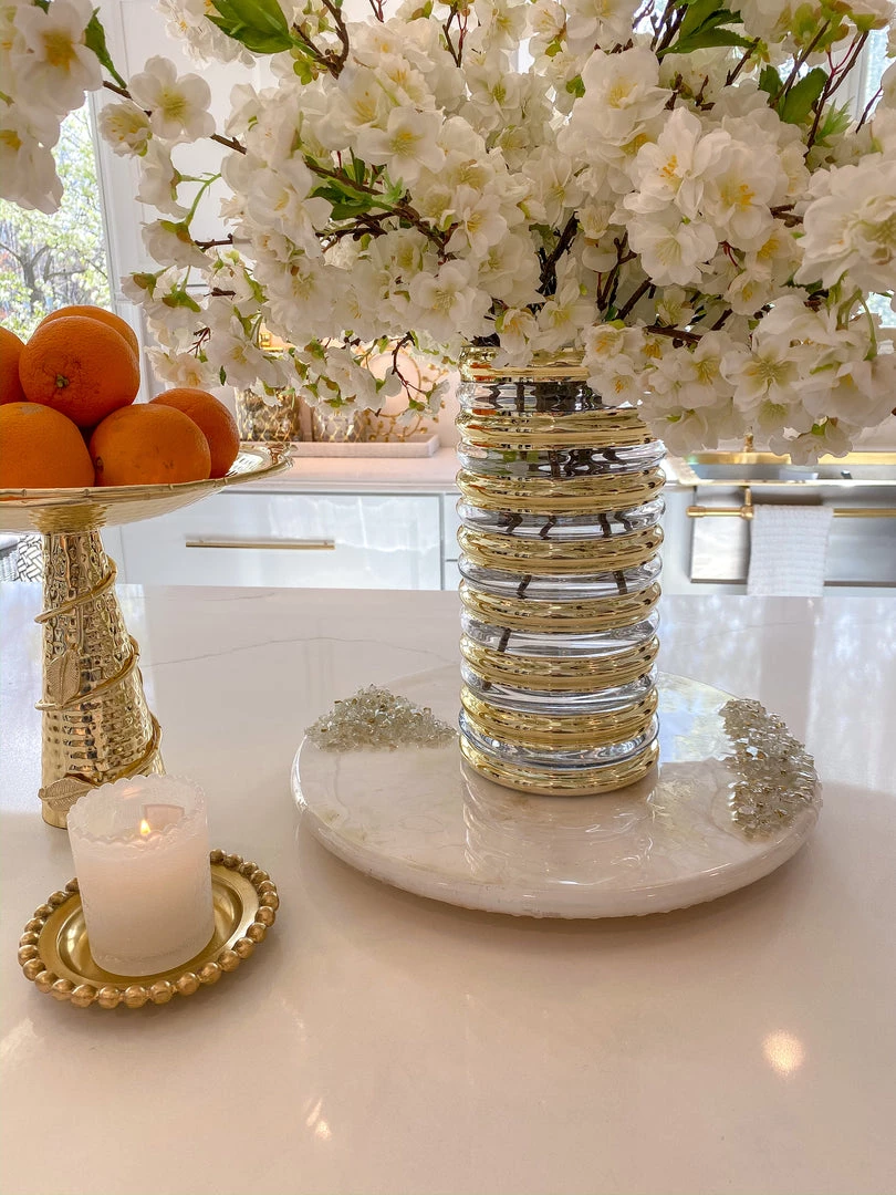 Description: This ribbed glass vase is a stunning base for your favorite florals! The clear glass is accented with strips of gold to add some extra pop and shine to your home! Available in 2 sizes!