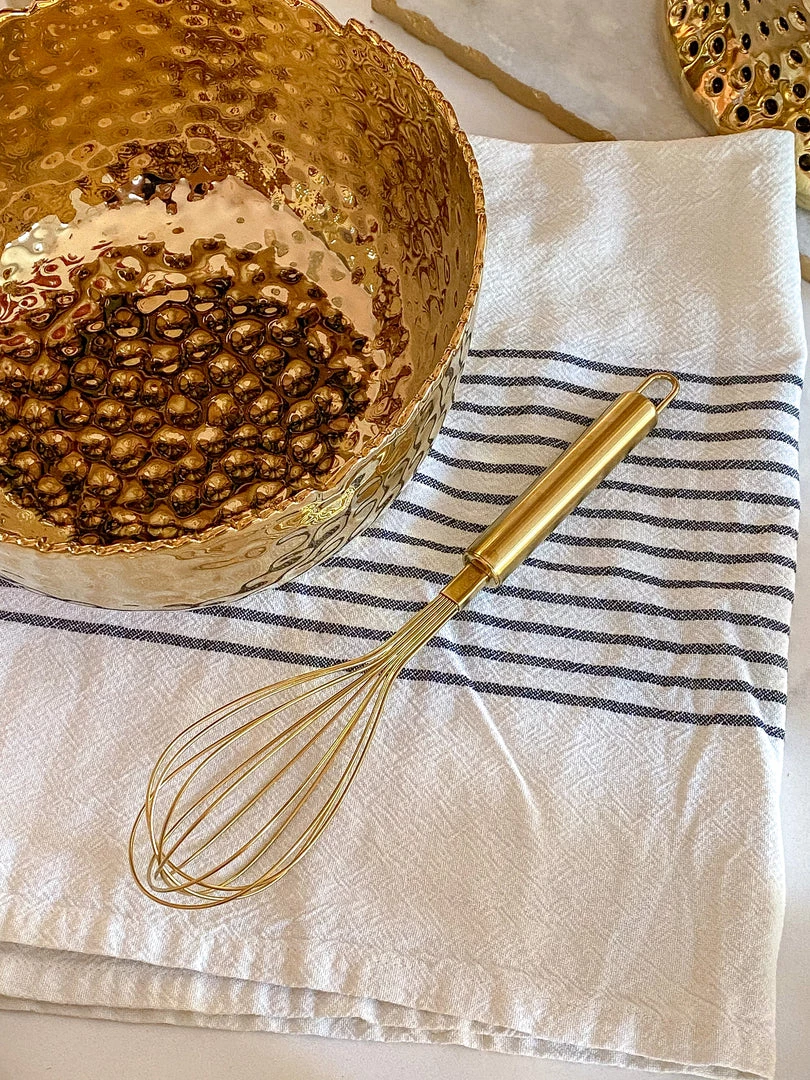 Description: This beautiful gold whisk is the perfect baking accessory! The gold look adds a beautiful and elegant touch to your kitchen experience.