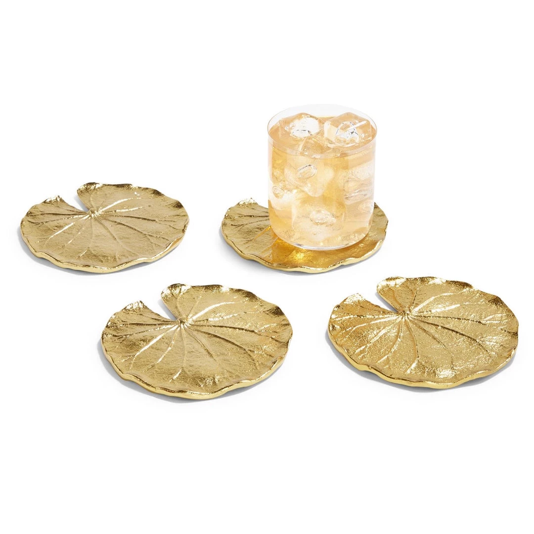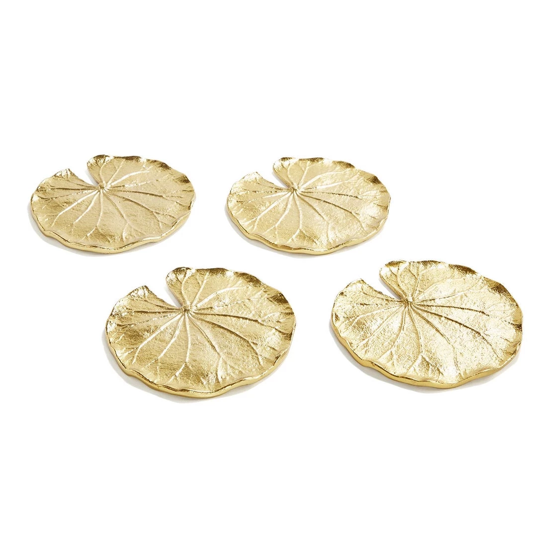 Description: Turning your coffee table into a glamorous little pond with these stunning golden lily leaf coasters!