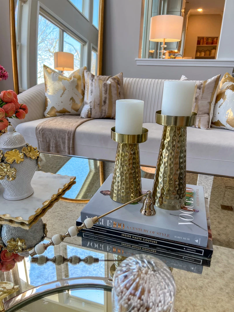 Inspire Me! Home Decor Round Marble Tray With Gold Edge And Metal Details