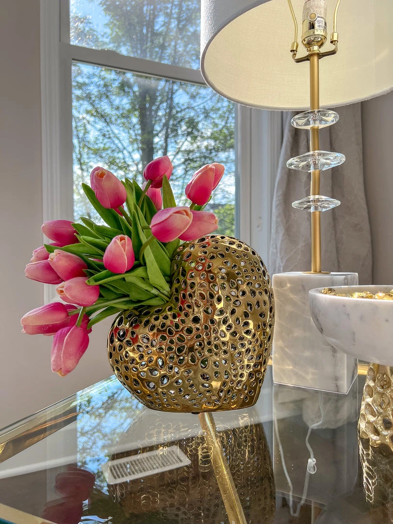 Inspire Me! Home Decor Round Marble Tray With Gold Edge And Metal Details