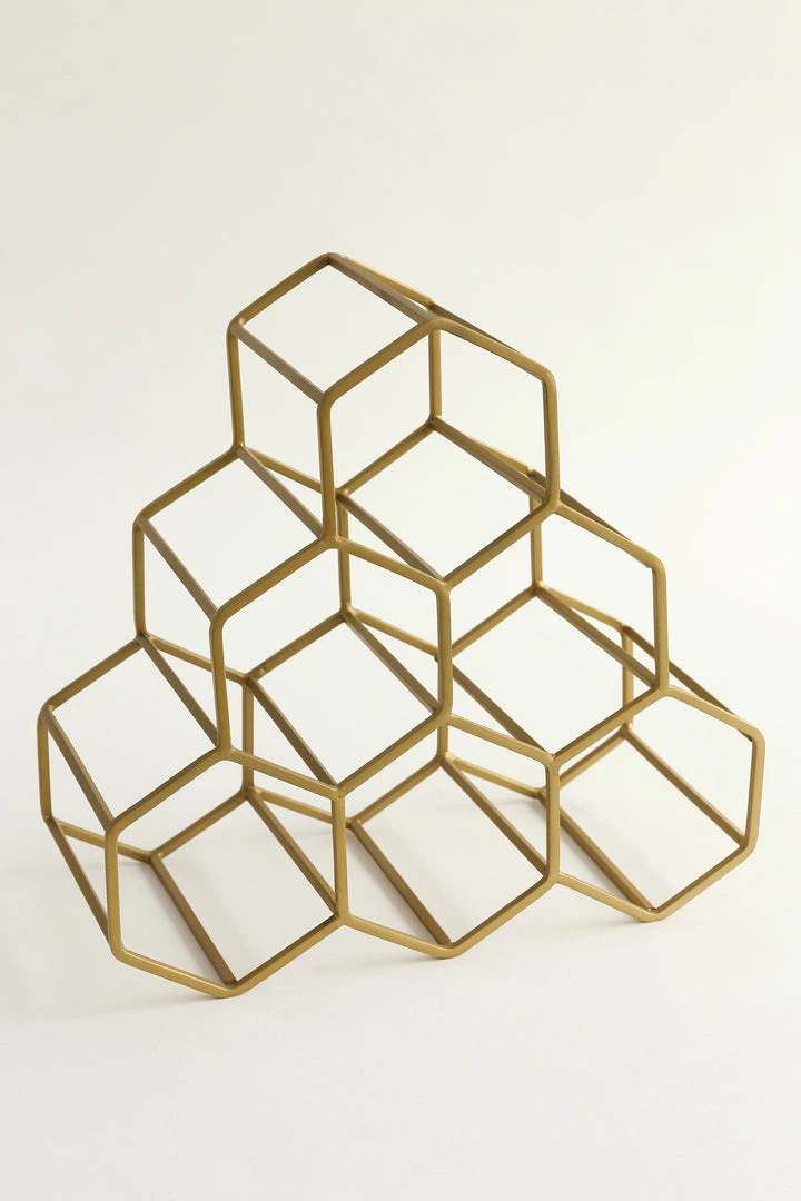 Description: This gold rack can be used to hold your bottles or your rolled towels! Place it on a shelf or on your kitchen counter for an elevated look.